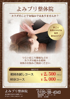 整体・マッサージのチラシ無料テンプレート・デザインサンプル - ネット印刷グラフィック。
