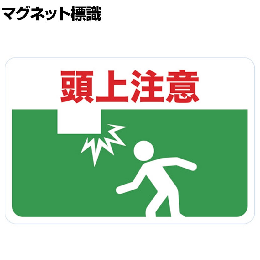 頭上注意 マグネット 磁石 標識 注意喚起 注意 警告 会社 工事現場 工場 ピクトサイン 英語入り 耐候性 耐久性 UVカットラミネート 送料無料お役立ちステッカーカッティングシールJAPAN。