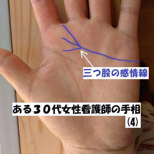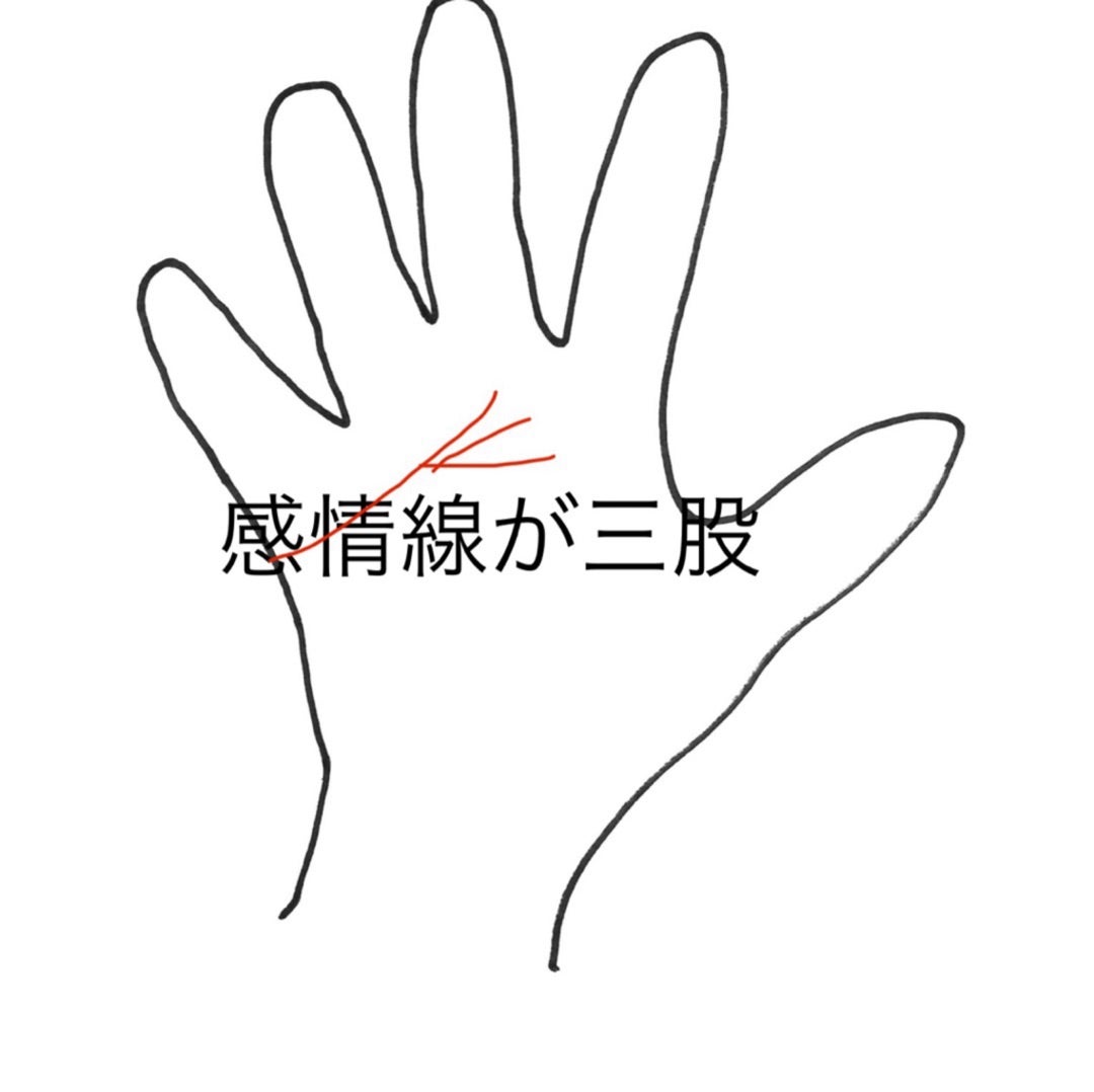 手相刑事@江幡 龍 on X: "感情線の先端が3本に枝分かれした方は、気配りが良く、初対面でも親しく接して相手を嫌な気持ちにさせない、いい意味での八方美人ですこの三つ股はあげまん線としても有名ですが、何事にも柔軟に対応できるので、相手や状況が変わる職種には。