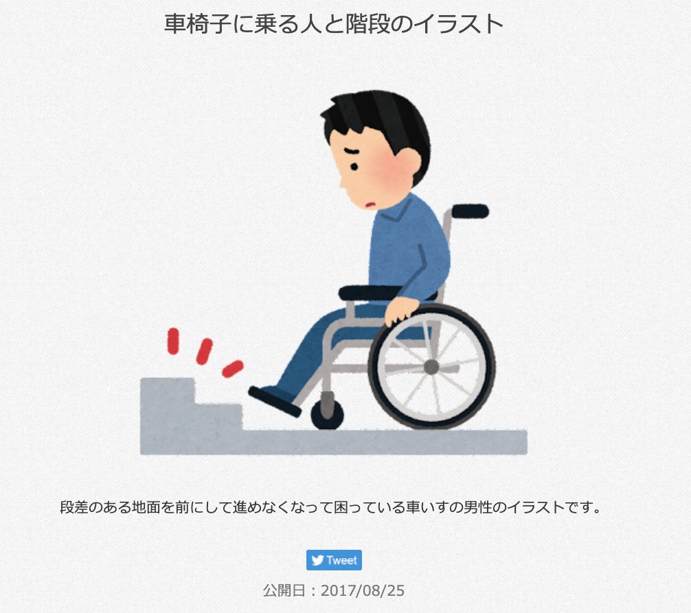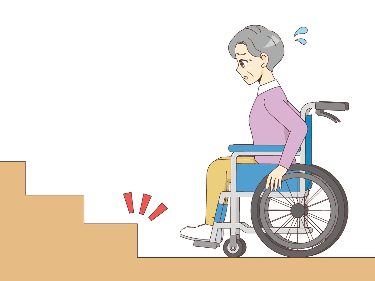 車椅子に乗る人と階段のイラストかわいいフリー素材集 いらすとや。