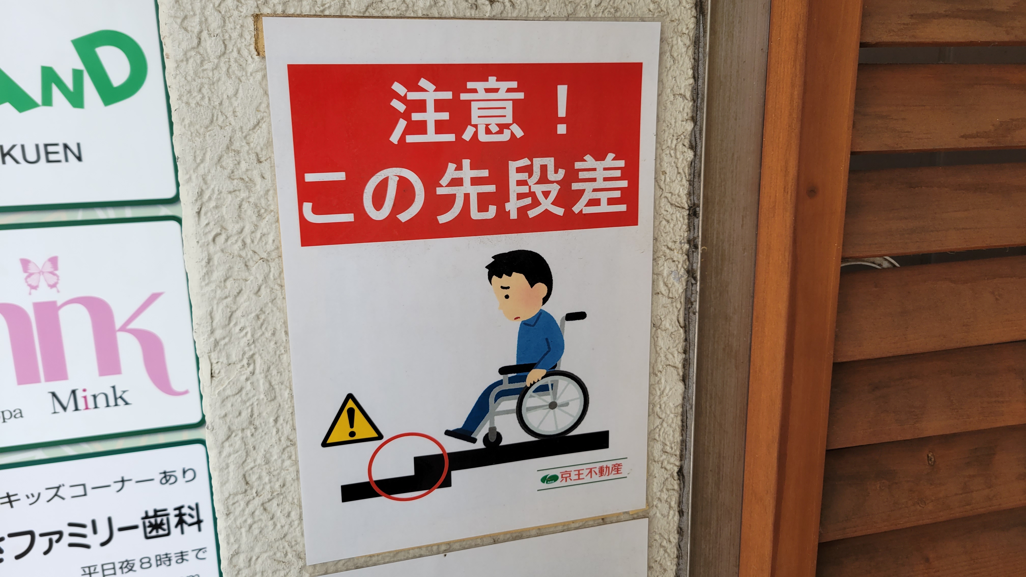三浦靖雄 on X: "登録1048号は中河原駅の東側高架下にある「この先段差注意」の張り紙。使用は「車椅子に乗る人と階段」ですが、ここでは下りの段差のため階段部分を加工して使っています。いらすとやいらすとやマッピング ↓ いらすとやマップ ↓ https:t.co。