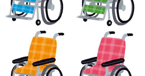 車椅子のイラスト「青・緑・黄・赤」かわいいフリー素材集 いらすとや。