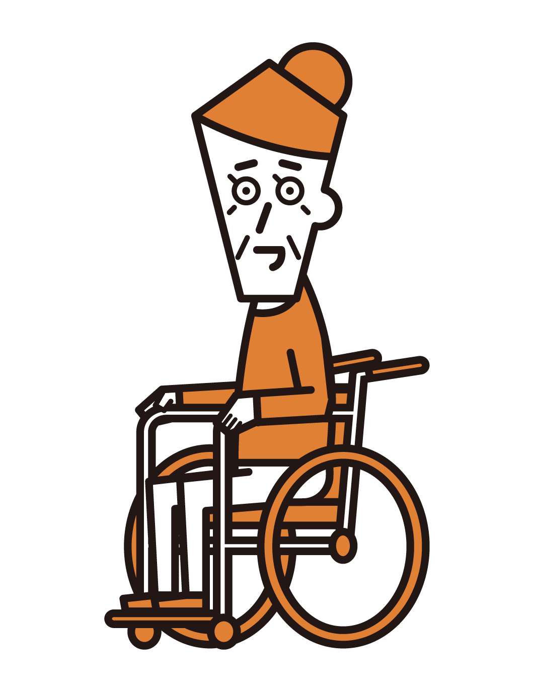車椅子に乗る高齢者の男性のイラスト - ONWAイラスト。