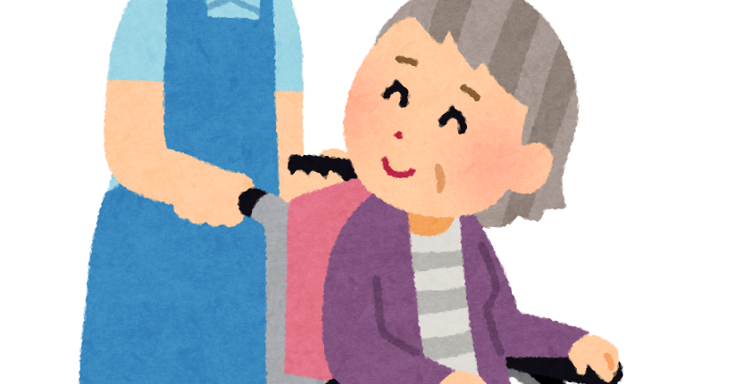 車椅子に乗った高齢患者さんと訪問看護師のイラスト🎨 フリー素材 看護roo! カンゴルー。