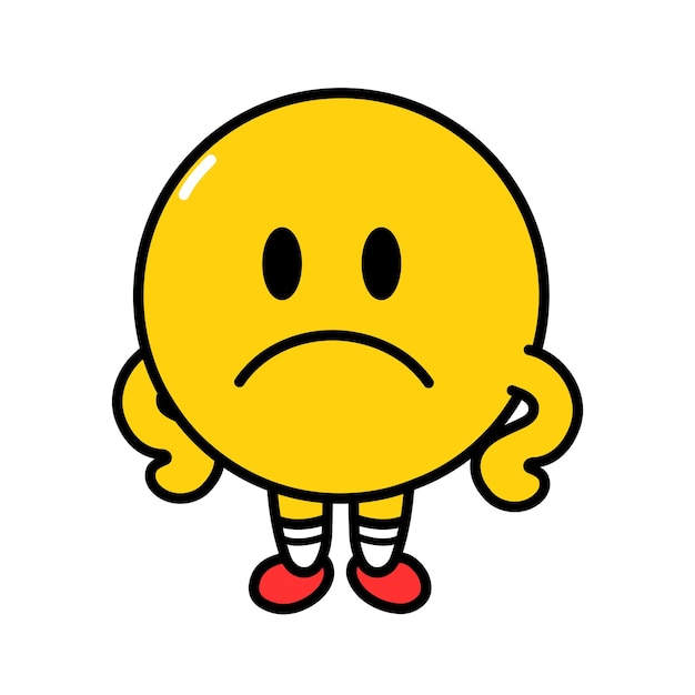 かわいい面白い悲しい絵文字の顔。ベクトルフラットライン落書き漫画かわいいキャラクターイラストアイコン。白い背景で隔離。黄色の絵文字サークルキャラクターコンセプトPremiumベクトル素材。