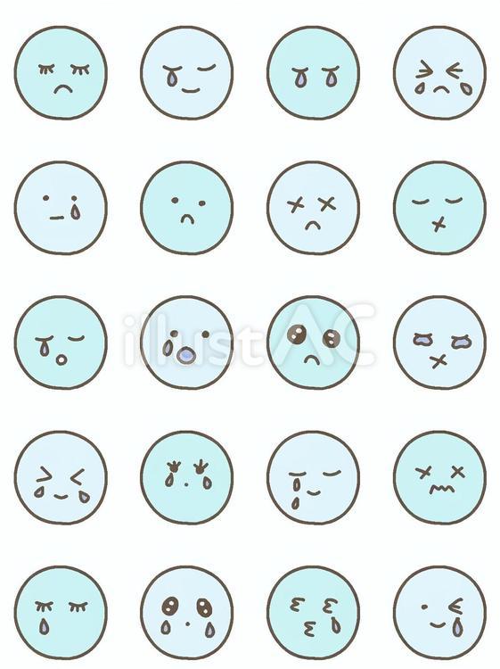 悲しい顔文字のセット。絵文字。スマイリーセット。Premiumベクトル素材。