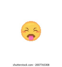 ピクセルアートに嫌悪感を与える絵文字のアイコン。絵文字を保持するベクター画像かわいいピクセル。レトロなピクセル8ビットスタイルの汚い絵文字。舌の黄色い顔 を持つ悲しいむかつく絵文字のアイコン。」のベクター画像素材 ロイヤリティフリー2007765308。