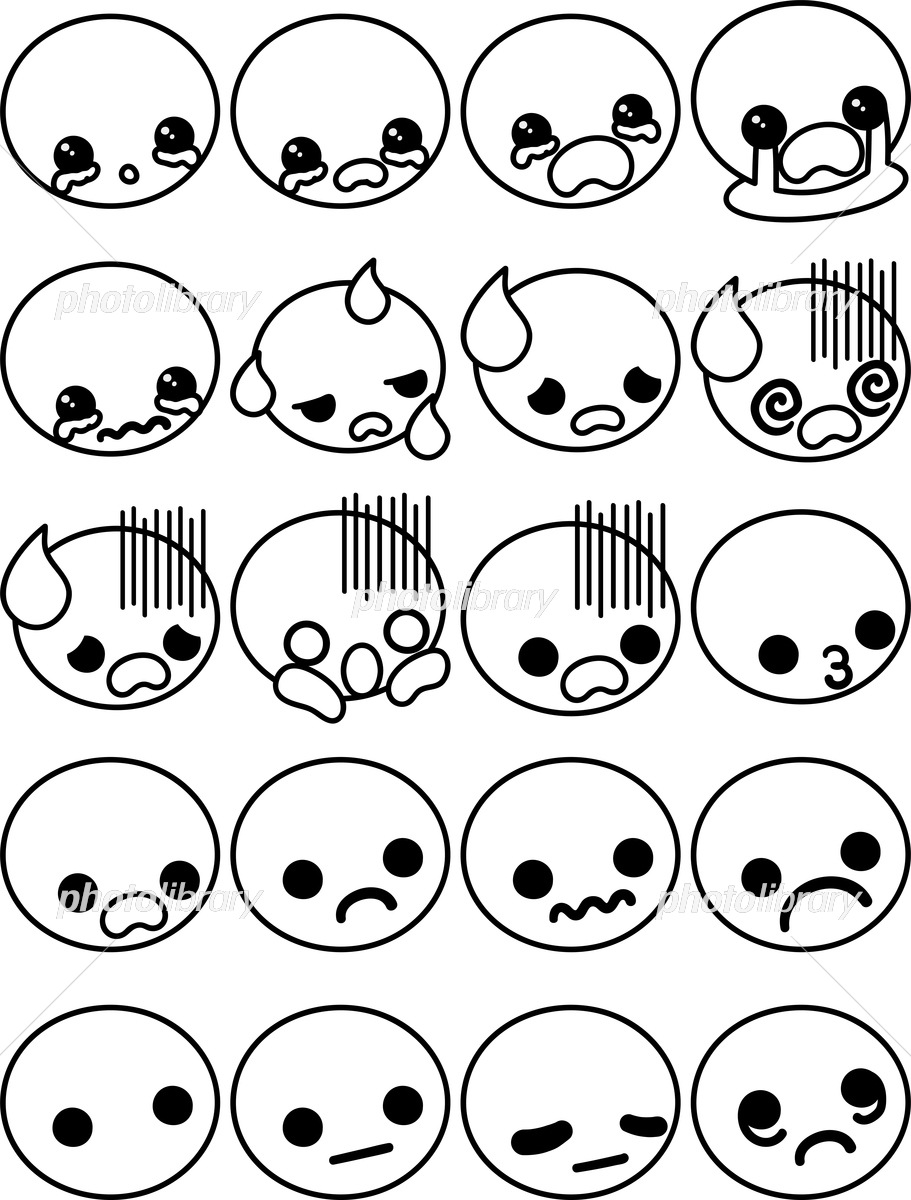 シンプルでかわいいネガティブな顔表情のアイコンセット 手書きタッチのステッカー風のイラスト素材106530650- PIXTA。