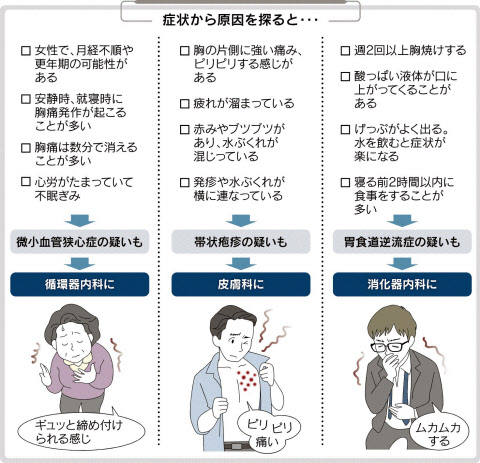 胸のあたりの痛み・違和感 微小血管狭心症、帯状疱疹、胃食道逆流症かも:働くオンナの保健室:日経Gooday グッデイ。