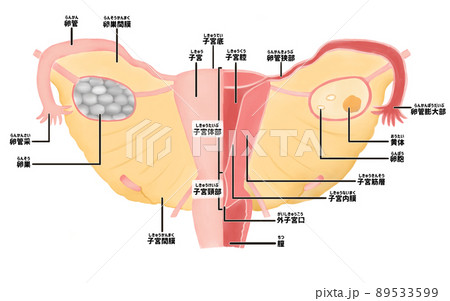 女性生殖器 内性器 の日本語図解イラスト わかりやすい人体解剖図234765633 毎月1点無料 フリー のストックフォト イメージマート。
