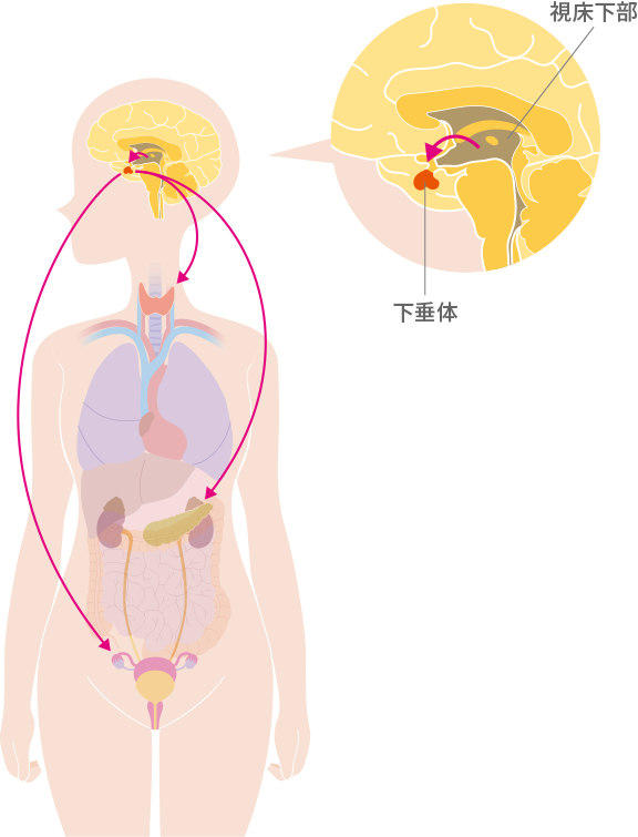 Ilustración de Stock 女性ホルモンの流れ 人体の仕組みAdobe Stock。