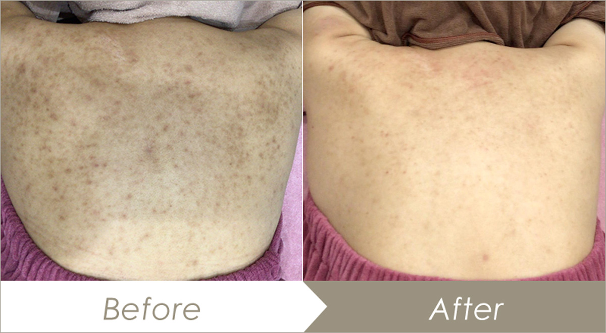 ☆背中の色素沈着治療~症例写真セイコメディカルビューティクリニック鹿児島福岡。