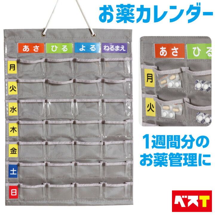 楽天市場 お薬カレンダー 薬ポケット 1週間分 壁掛け式 マチ付 投薬カレンダー 服用管理 服薬管理 薬整理 薬ケース 飲み忘れ防止 間違え防止シニア 介護 福祉 高齢者 薬入れ 便利グッズ 送料無料:ベスT薬, 薬 ケース, 投薬。