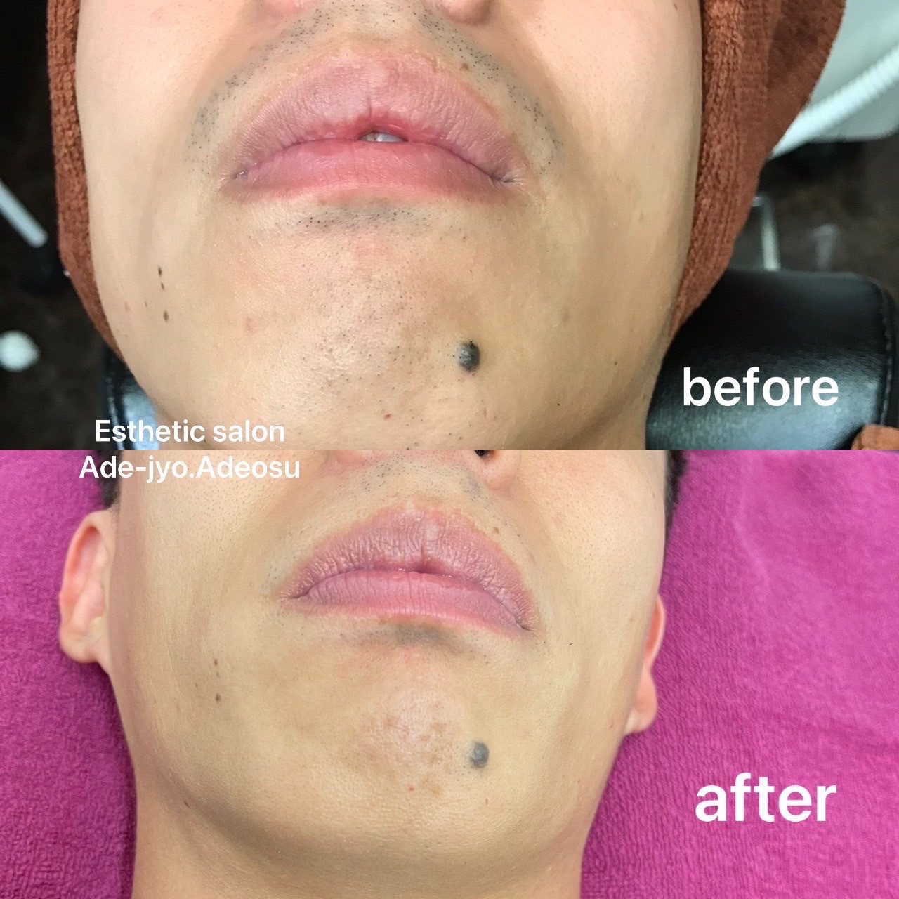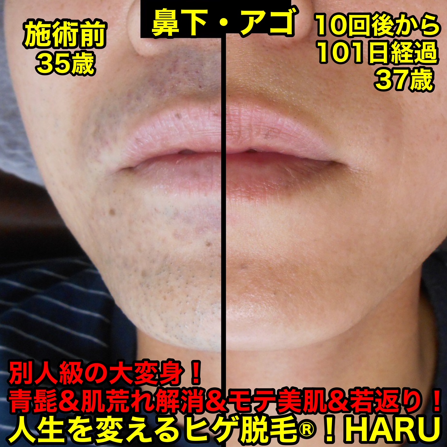 髭脱毛のビフォーアフターです 月2回の頻度で2回照射した後、1ヶ月経過した後です! 髭脱毛は回数MEN'S CARE メンズ脱毛サロンのエステ ・リラクカタログ 20230816205425 ミニモ。