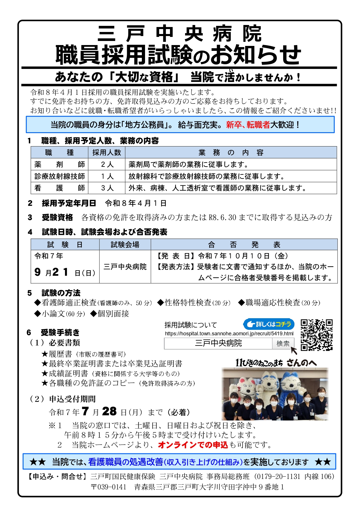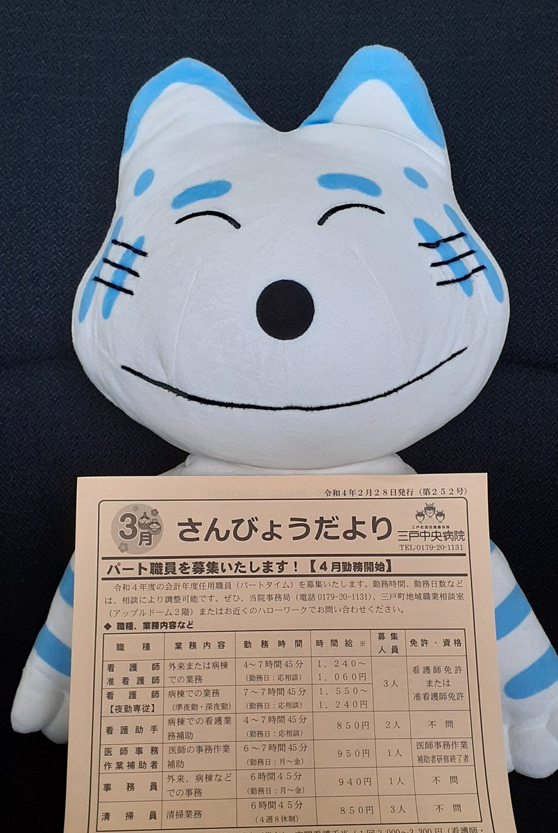 三戸中央病院 公式on X: "12ひき目のねこになりませんか? 4月から当院で一緒に働いてくれる仲間を募集します! 職種は看護師准看護師看護助手医師事務補助者事務員清掃員 。申込みは3 14 月 まで11ぴきのねこ馬場のぼるとらねこたいしょう三戸町。