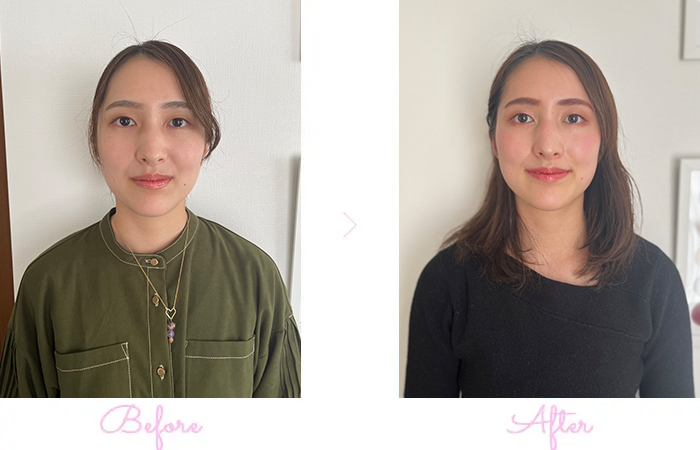 お客様のビフォーアフター 全部が濃くなってしまいバランスが難しいとお悩みのお客さま ファンデBeauty produce salonわたしいろ所属・パーソナルカラーメイクレッスン みきの美容サロンカタログ 20240605185441 ミニモ。