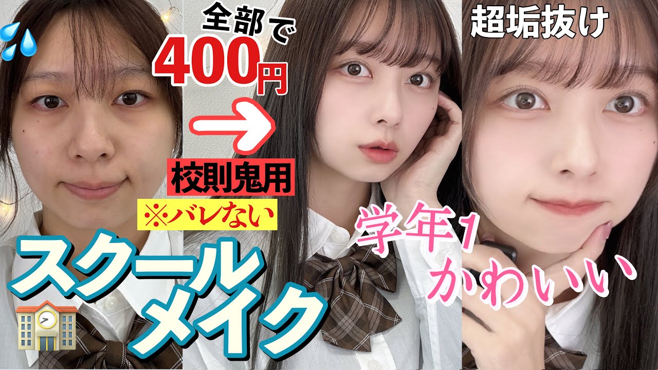 校則鬼でもバレずに垢抜け 学年1可愛くなる‼️400円で作るスクールメイク♡小顔マッサージ付き♡ 初心者OK一重奥二重100均コスメすっぴんメイク。
