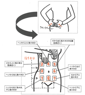 女性専用パーソナルジムMoveLab ムーブラボ- 腸もみ 小腸の場合おへそを中心に①~④を順番に 優しく掌 てのひら で、2-3センチ沈む位の強さで押します。Facebook。