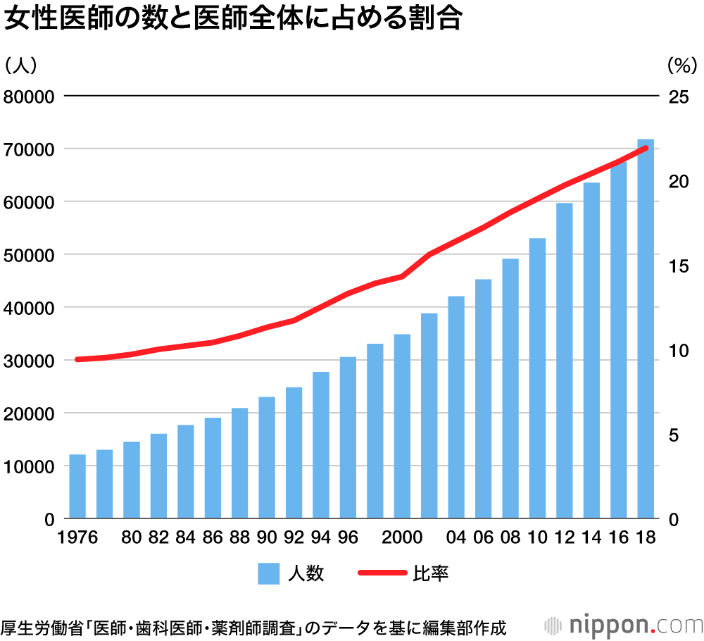 女性医師、初の8万人超え 男性との差は依然大きくnippon.com。