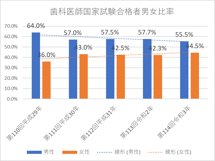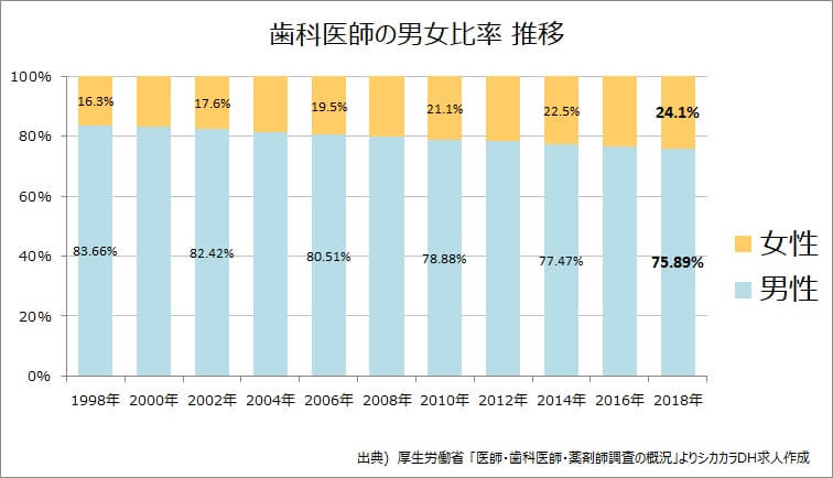 歯科医師の男女比率と今後の予測歯科開業トピックス。