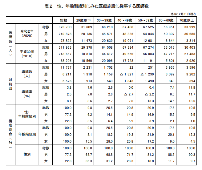 世界各国比較医師の男女比ランキング・年代・診療科別 - ラボコート。