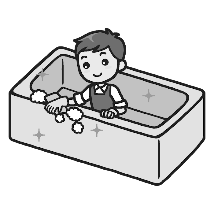 お風呂掃除 モノクロ掃除 訪問介護 介護・医療 無料イラスト素材。