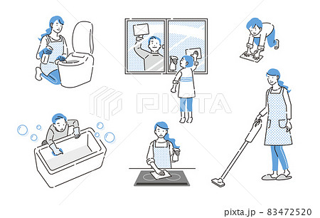 家事をする人物 女性 お風呂掃除 イラストのイラスト素材75577435- PIXTA。