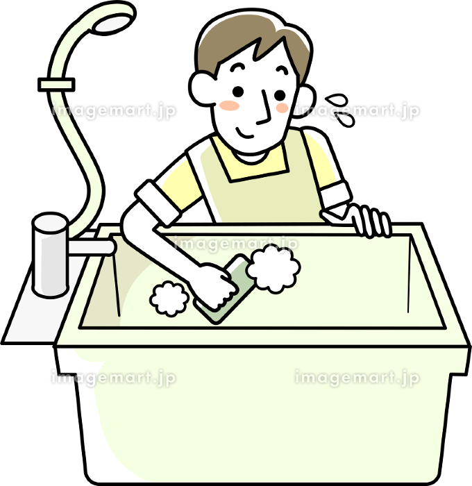エプロンをつけてお風呂掃除をする若い男性のイラスト素材230170485 毎月1点無料 フリー のストックフォト イメージマート。