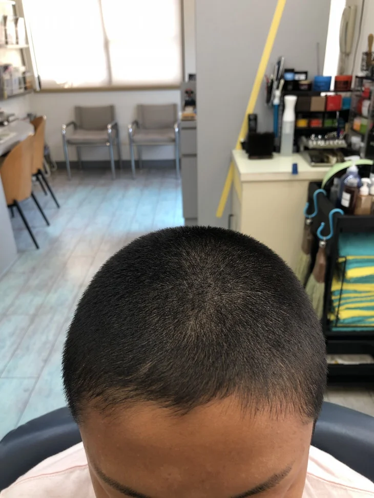 短すぎない長めの丸刈り 15mmカットスペース・K ー BARBER SHOP横浜市港南区の理容室。