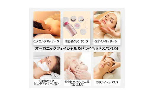 体験型 オーガニックフェイシャル&ドライヘッドスパ70分エステ マッサージ オイル ドライヘッドスパ リフレッシュ リラクゼーション チケット癒し 疲れ 体験2404L05405。
