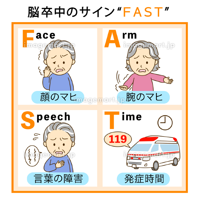 脳卒中の症状の「FAST」のイラストかわいいフリー素材集 いらすとや。