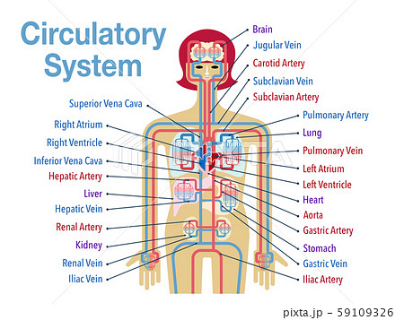 英語で各部位の名称が記載された循環器系のシンプルなイラストのイラスト素材59109326- PIXTA。