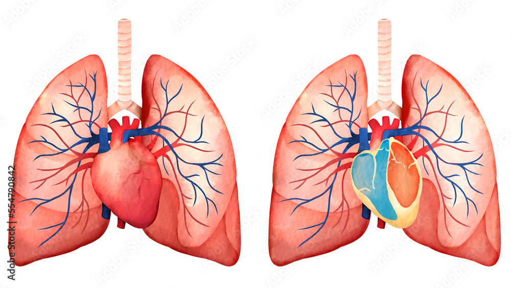 肺と心臓の血液循環の水彩風イラストセット Stock IllustrationAdobe Stock。
