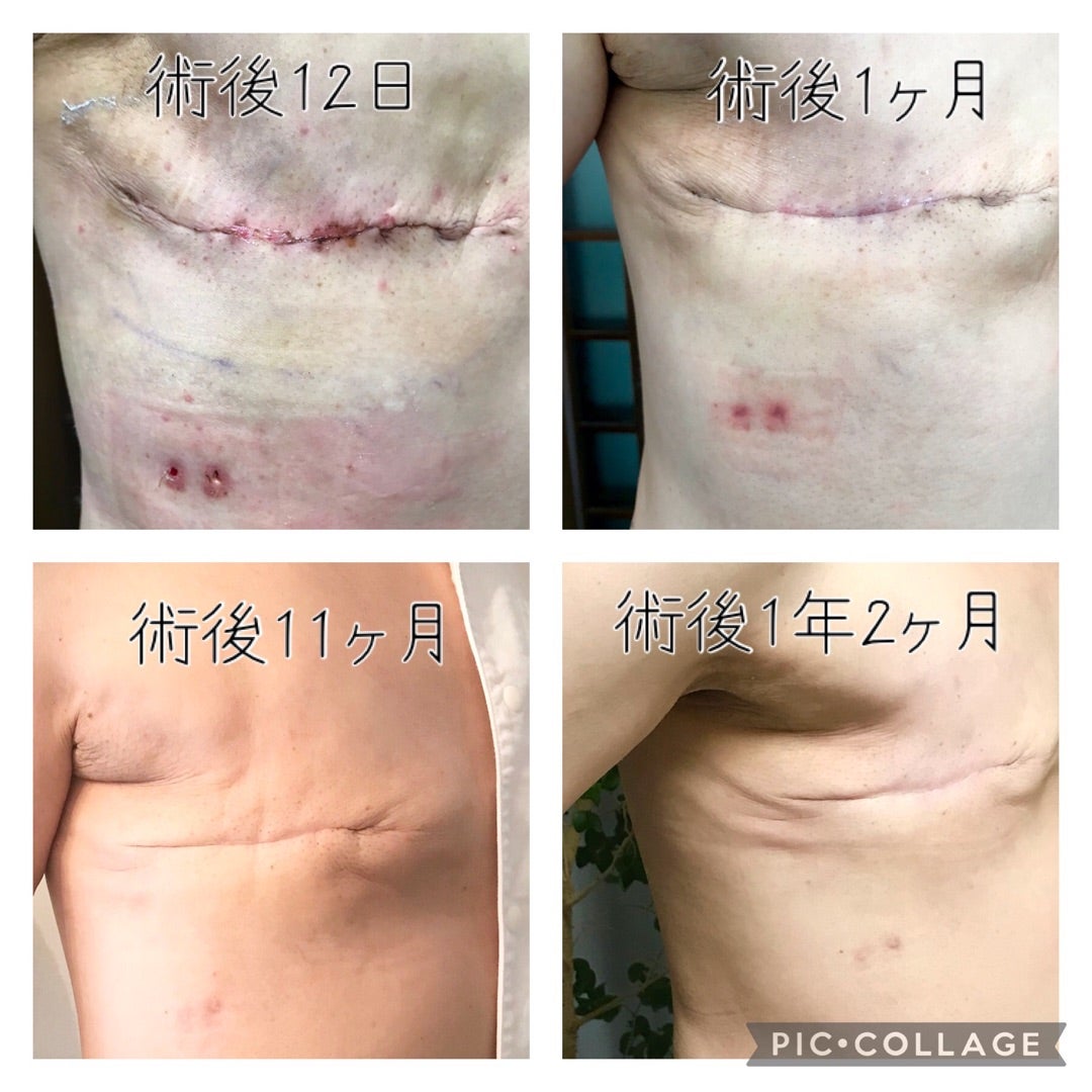 乳房全摘手術後の傷履歴公開浸潤性乳がん・手術のち無治療。