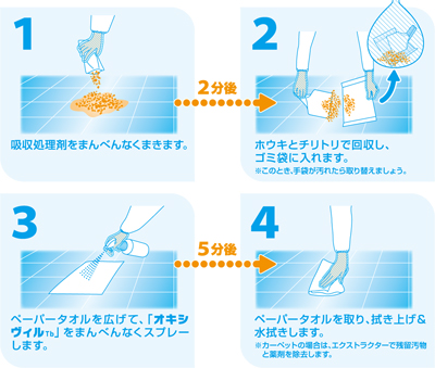 汚物・嘔吐物処理はじめよう!自分でできる衛生管理感染防止対策・食品衛生ライオンハイジーン株式会社。