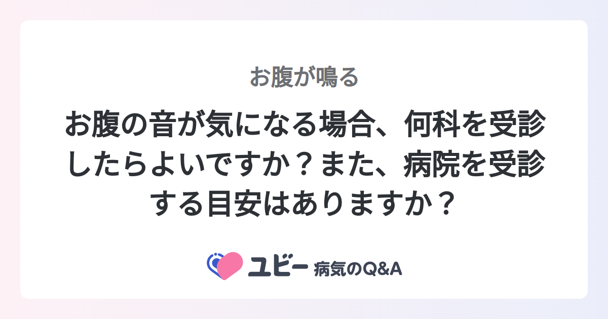 お腹の音が気になる場合、何科を受診したらよいですか?また、病院を受診する目安はありますか? お腹が鳴る。