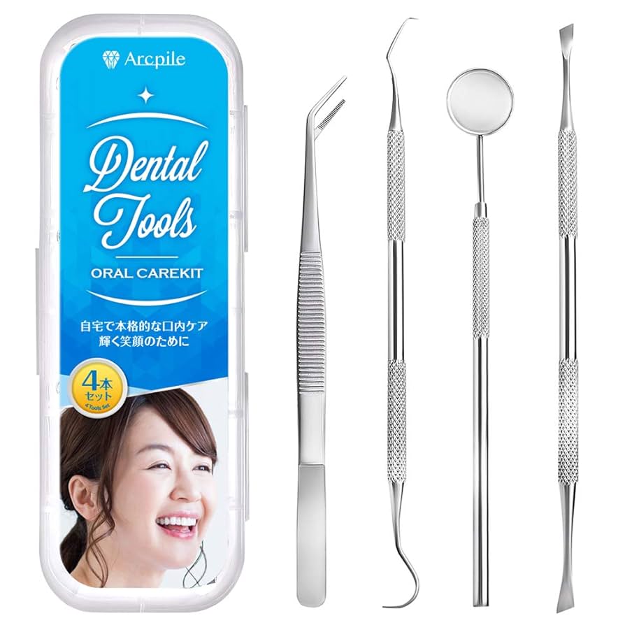 Amazon歯石取り 歯石 スケーラー デンタルミラー 入り 歯用ツール選りすぐりの4点セット歯石除去 器具 アークパイルArcpileArcpileキュアレット・ハンドスケーラ。