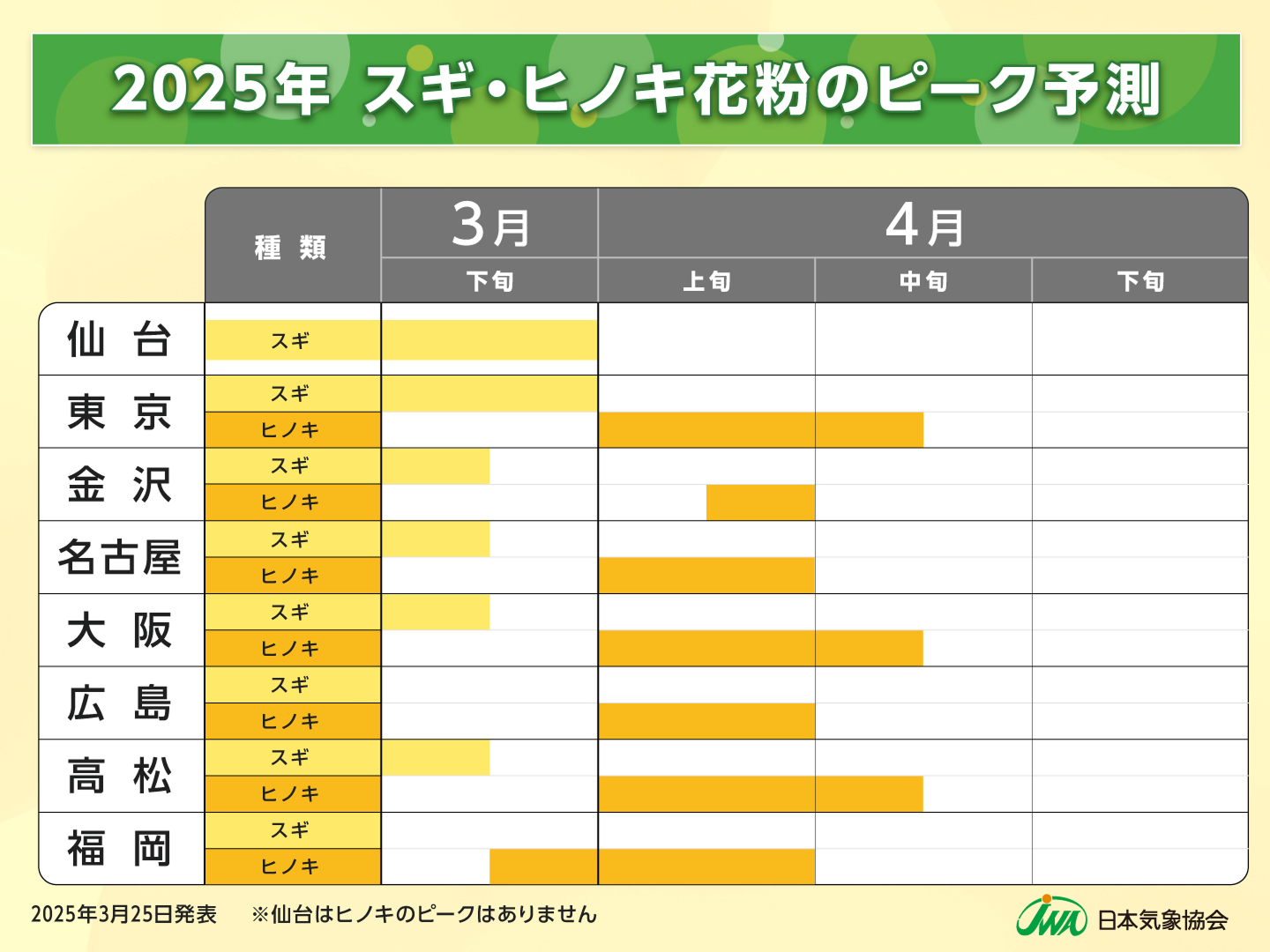 日本気象協会 2025年 春の花粉飛散予測 第6報 ~スギ、ヒノキ花粉シーズン終了へ 大阪は最近10年で最多に 速報値 ~JWAニュース日本気象協会。