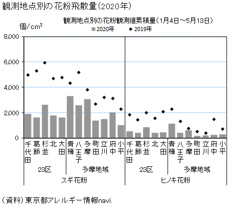 令和5年地点毎の花粉飛散状況:多摩東京都の花粉情報東京都アレルギー情報navi。
