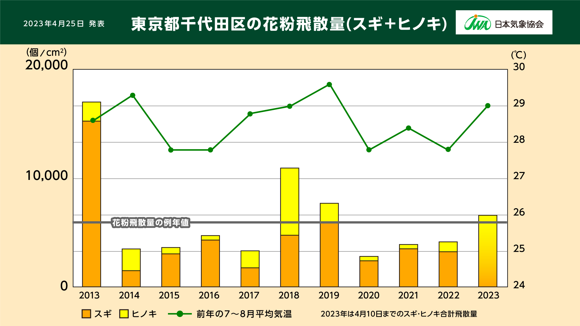2023年シーズン スギ ヒノキ花粉の飛散量 速報 ~過去3年で最も多い飛散を観測、東京は4月末で終了見込み~JWAニュース日本気象協会。
