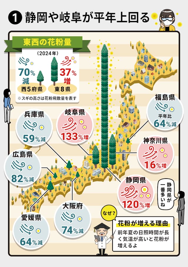 2024年の花粉は「東高西低」 静岡や岐阜が平年上回る - 日本経済新聞。