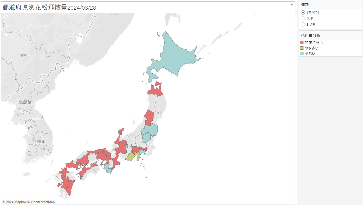 Tableaupublicで直近3年間の花粉飛散量を比較するキノシロの止まり木。