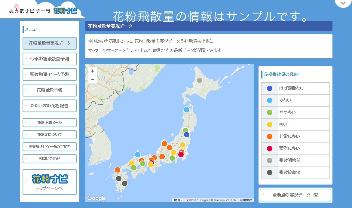 環境省の花粉観測情報と独自の飛散予測をサイト「花粉ナビ」で公開しますニュース日本気象株式会社。
