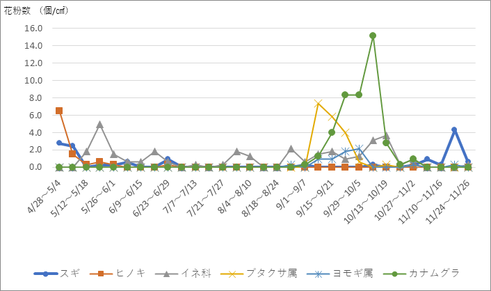 飛散花粉数データ:夏から秋の花粉東京都の花粉情報東京都アレルギー情報navi。