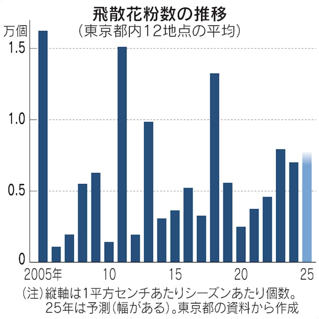 花粉の飛散量、25年は多めか 春の訪れ早く - 日本経済新聞。