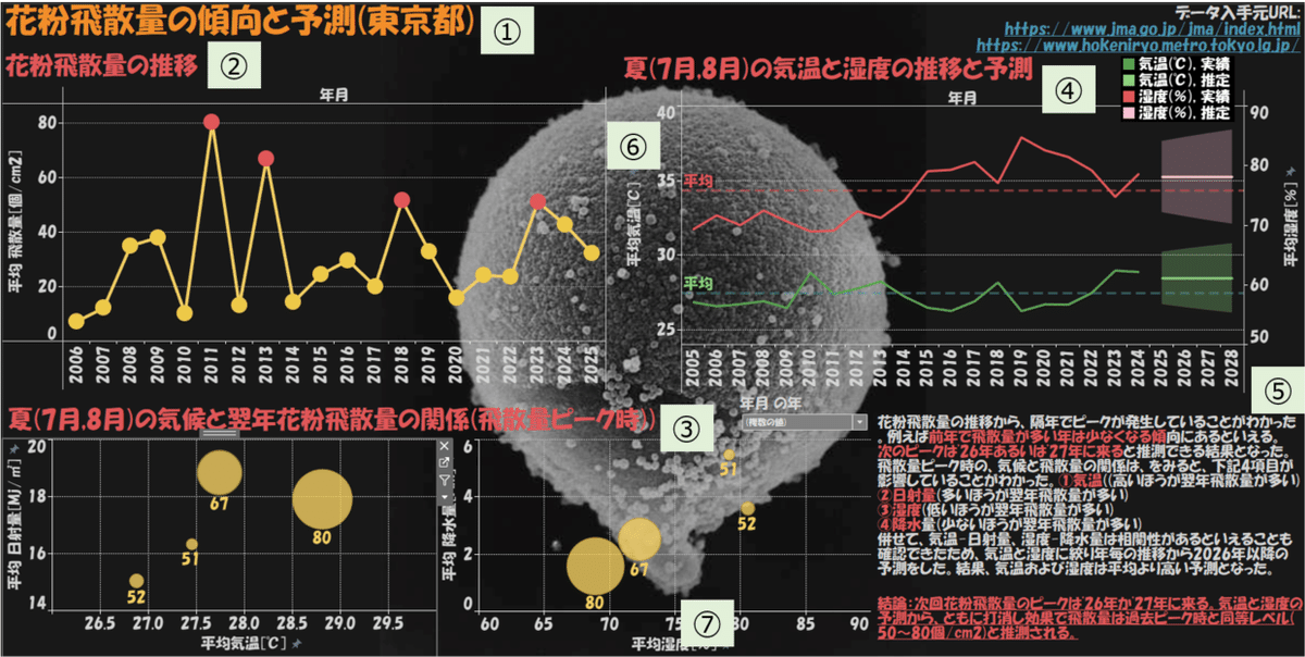 Tableau Viz作成記録 花粉飛散量の傾向と予測 東京都 たーぼ。