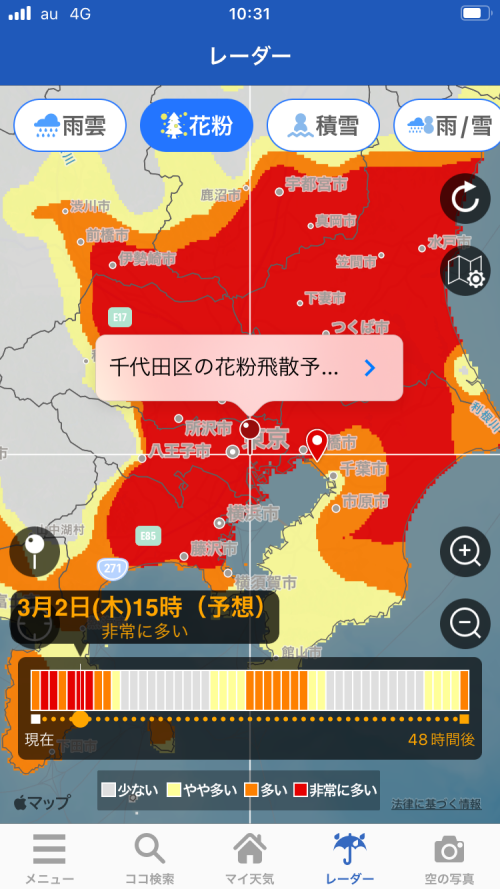 大量飛散エリアがひと目でわかる「花粉レーダー」に花粉量グラフを追加Weathernews Inc。