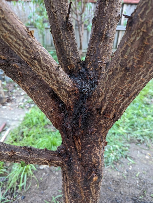 梅の木から樹液が滲み出てる。 : r BackyardOrchard。