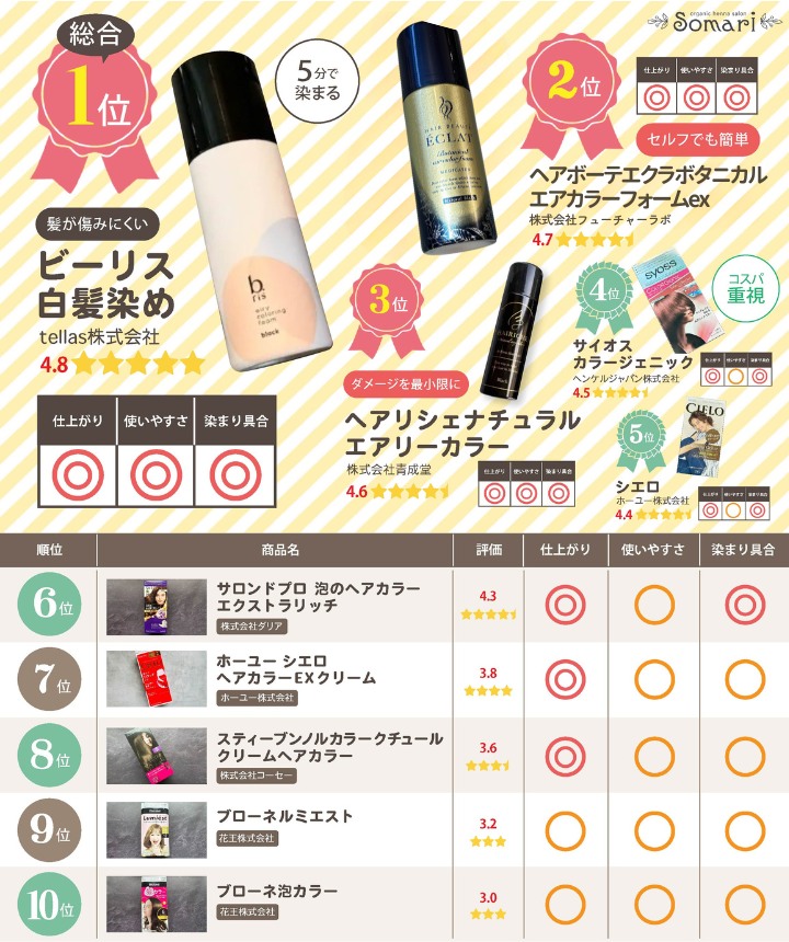 白髪も染まるオシャレ染めのおすすめランキング10選!市販・ドラッグストア込み商品を厳選白髪染め専門美容室ソマリ。