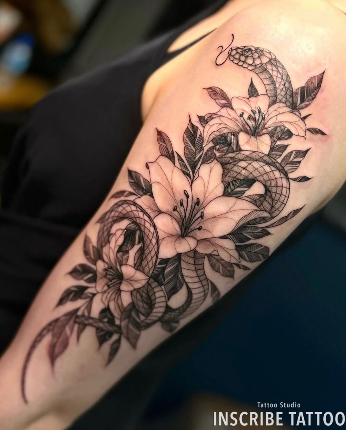 蛇×ユリ Snake×Lily Serpiente×Lirio Serpent×Lys千葉船橋タトゥーサロン 1stタトゥーも安心。&TATTOO bynaoE -creative tattoo artist-。